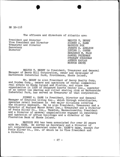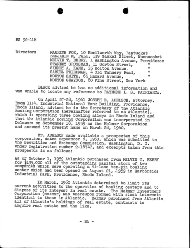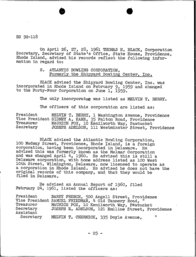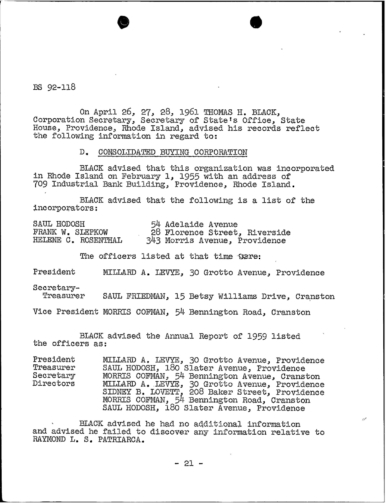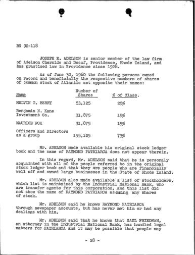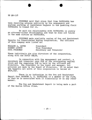 Saul Friedman is accused of being the financial front man for Patriarca’s organization. Friedman, Patriarca’s lawyer, is claimed to have made the investments and traveled around the country for Patriarca’s interests in Las Vegas, and to Texas and Oklahoma in connection “with possible oil and/or natural gas investments for the group.”