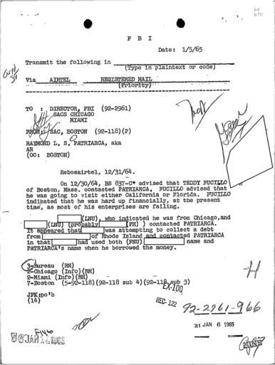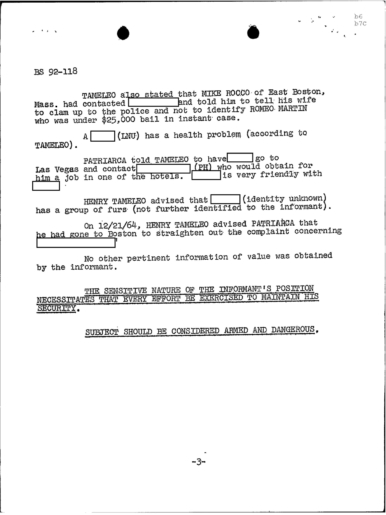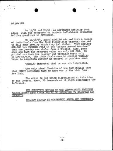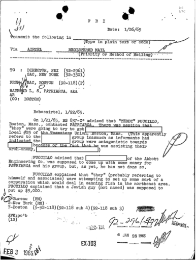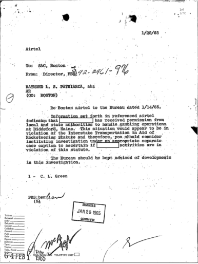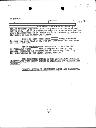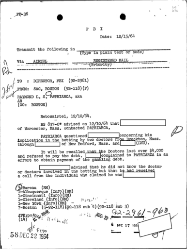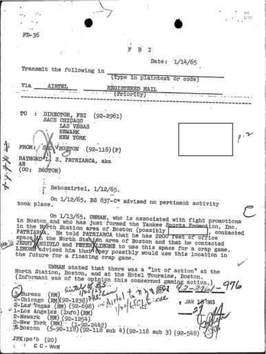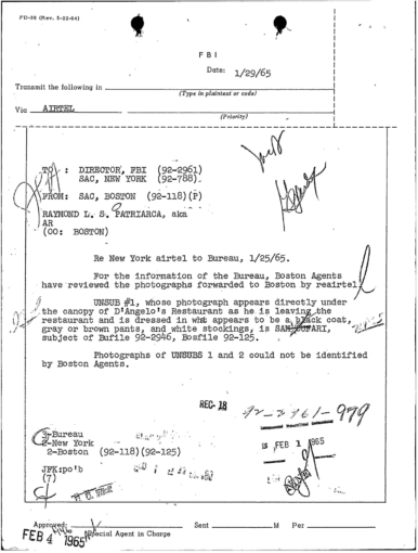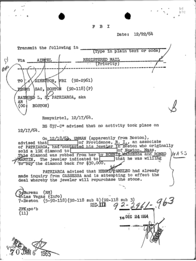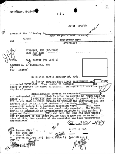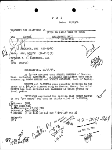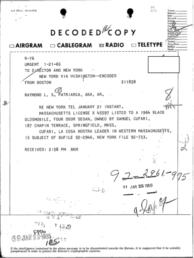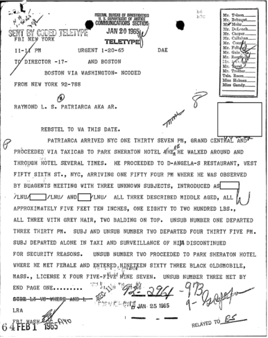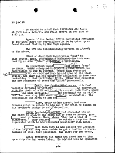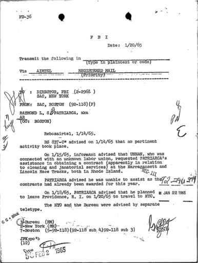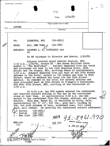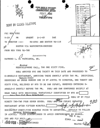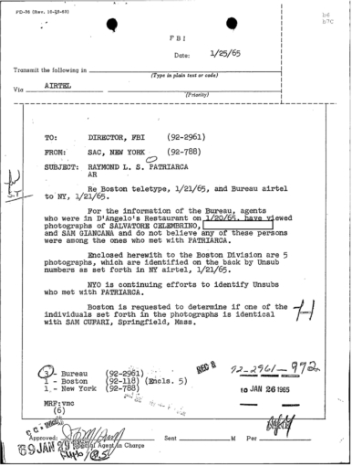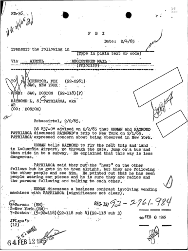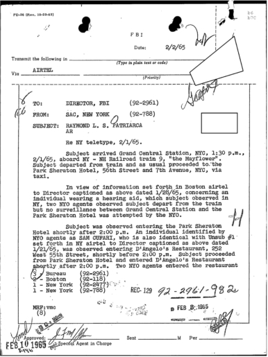 PAGE 30 — See the TELETYPE of Tracking Patriarca to New York City