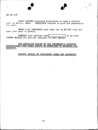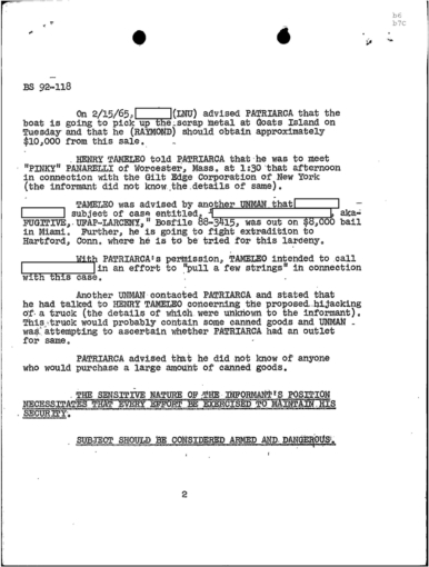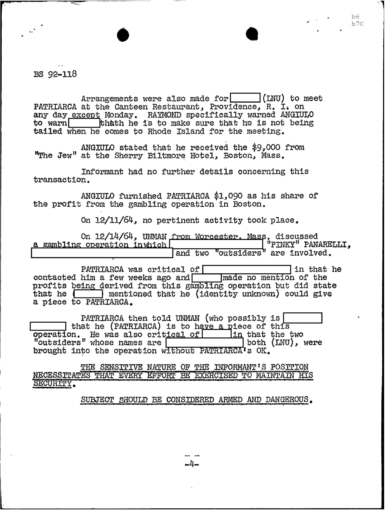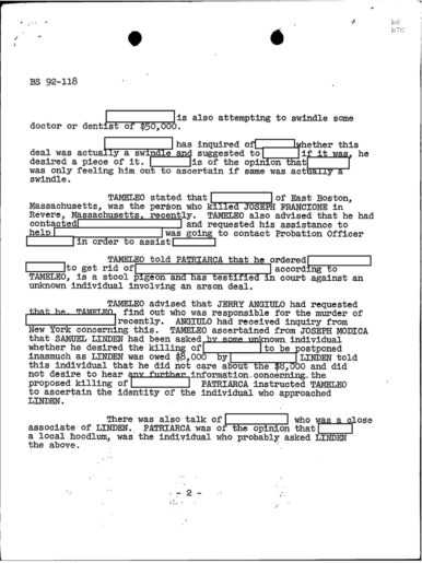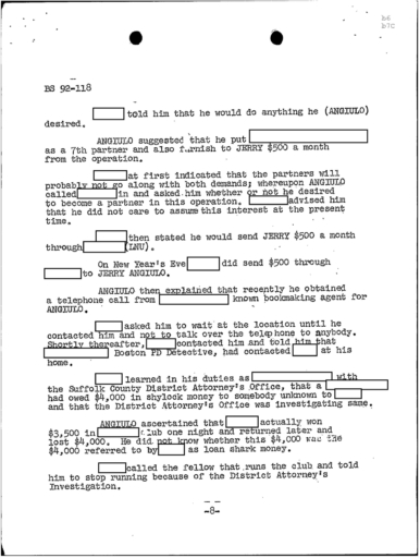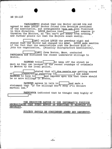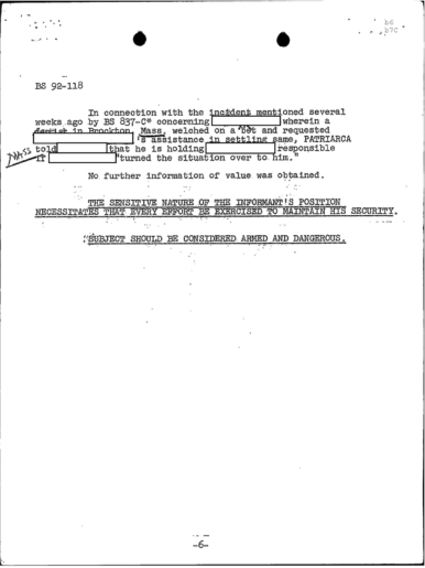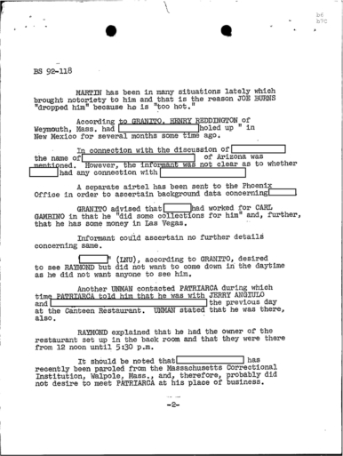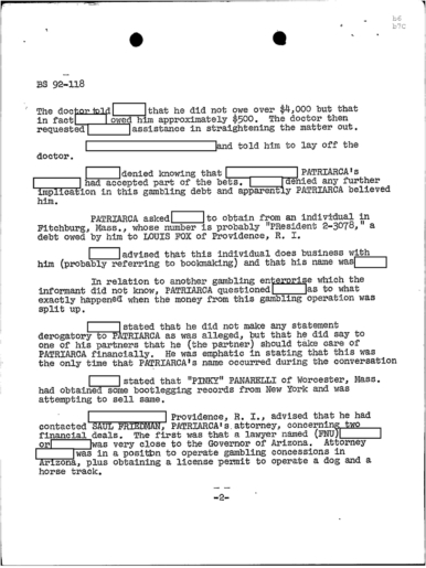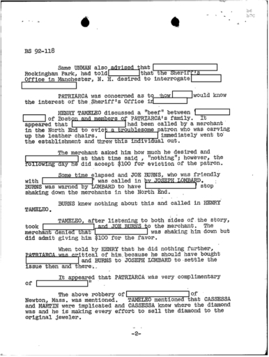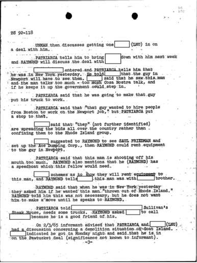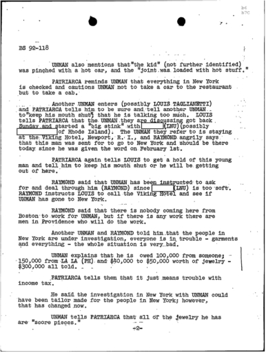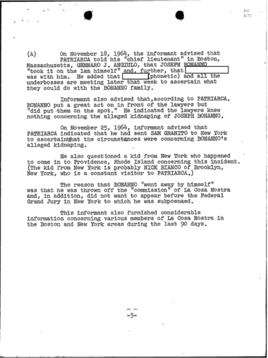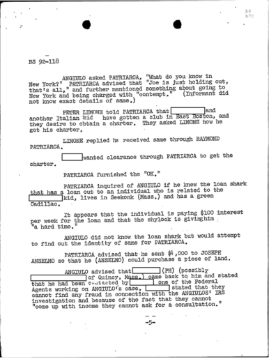 PAGE 6 “Joe Bonanno “went away himself,” Nick Banco Tell Raymond Patriarca