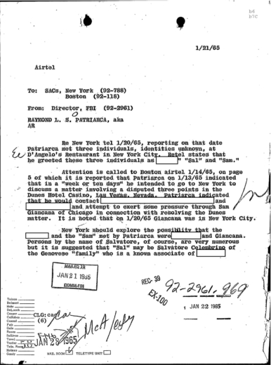 PAGE 31 Raymond Patriarca Meeting with Sam Giancanca on New York City?