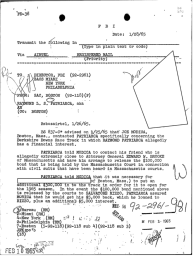 REDACTED also stated that as soon as EDWARD W. BROOKE Negro Attorney General of Massachusetts, runs for Governor for the State of Massachusetts, the ANP will infiltrate Massachusetts.”