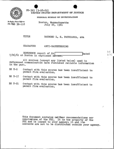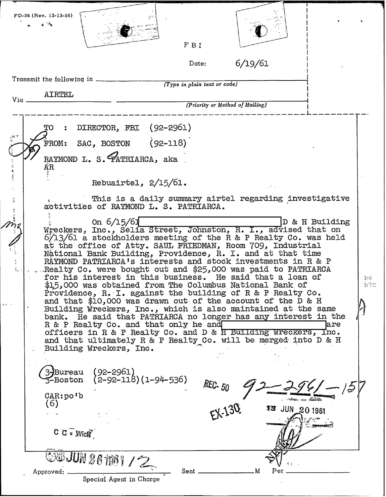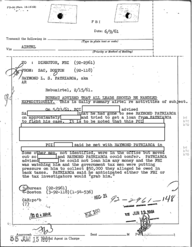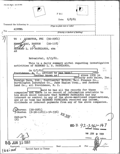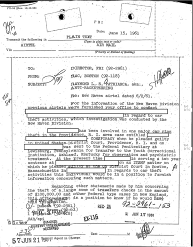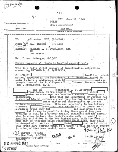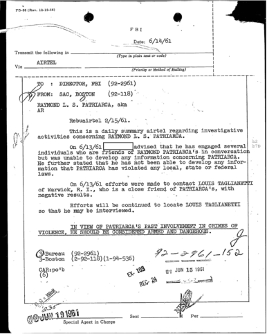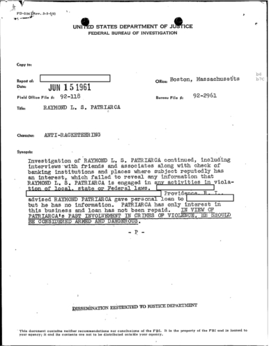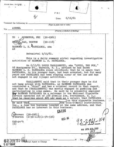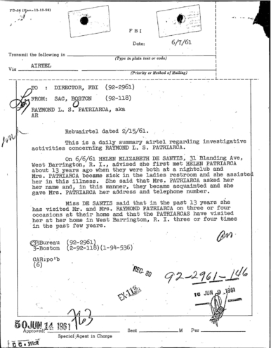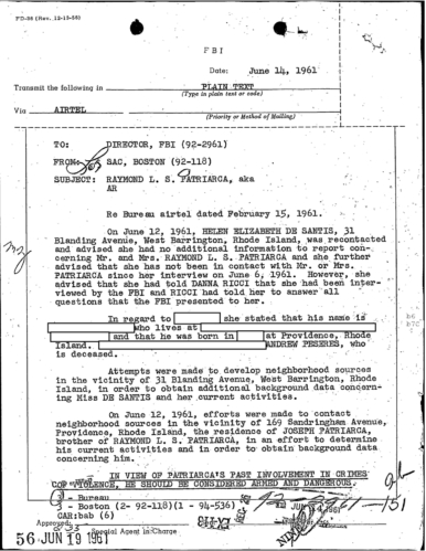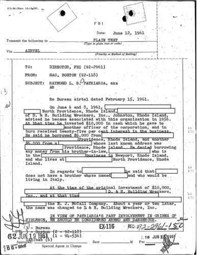 FBI Files - The Patriarca Papers - Entry 10