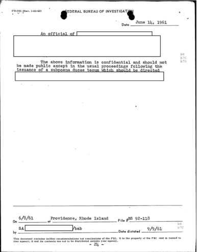 FBI Files - The Patriarca Papers - Entry 10 (Patriarca Takes Out an Ad)