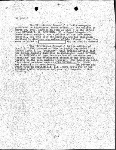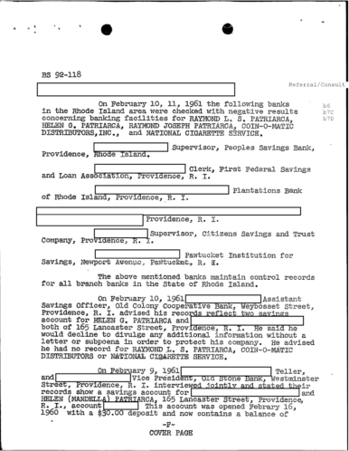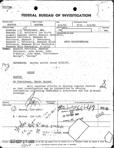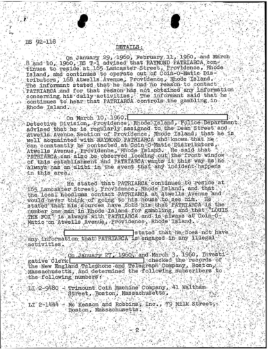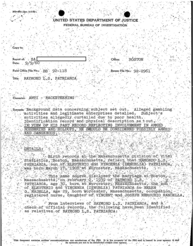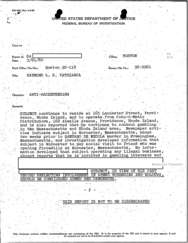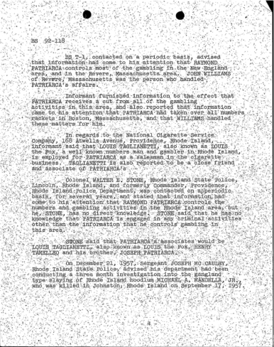 FBI Files - The Patriarca Papers - Entry 3, Part 1