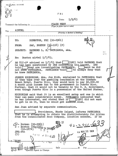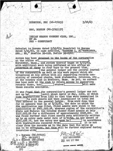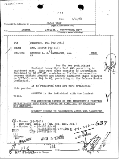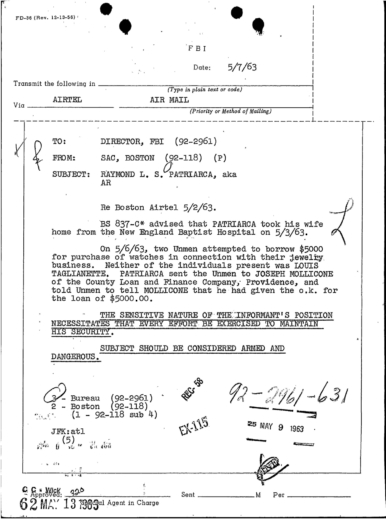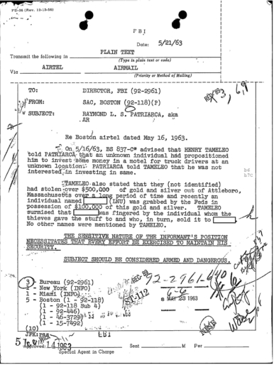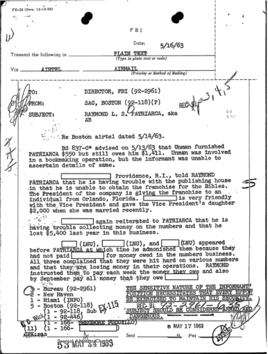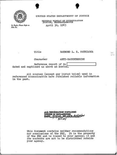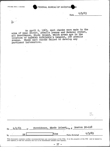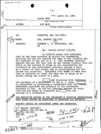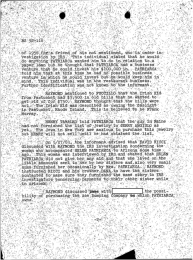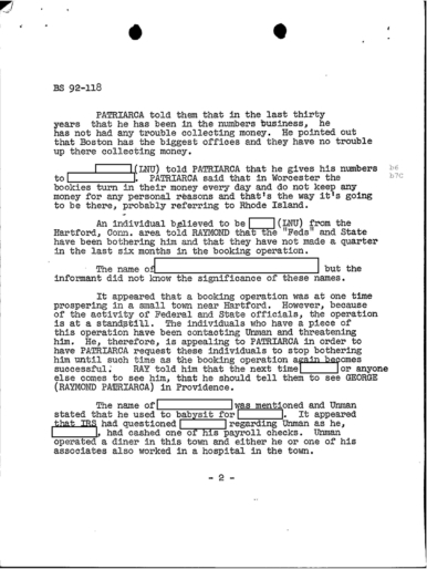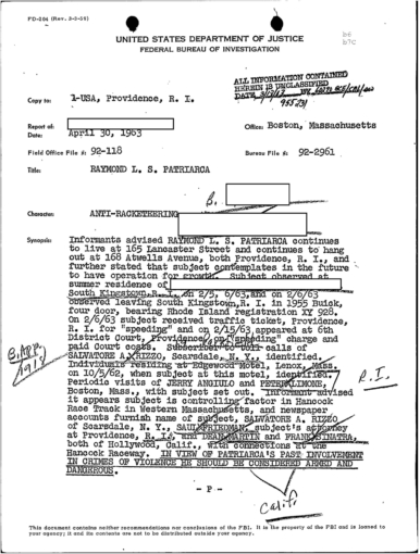 FBI Files - The Patriarca Papers - Entry 30