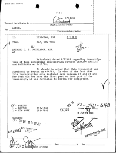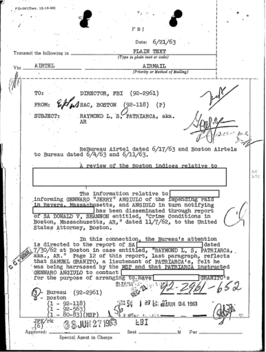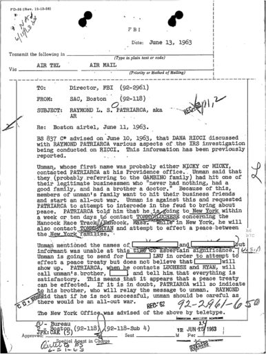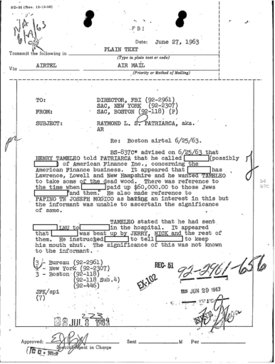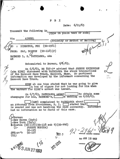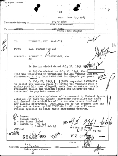 FBI Files - The Patriarca Papers - Entry 31