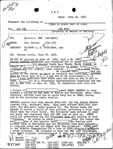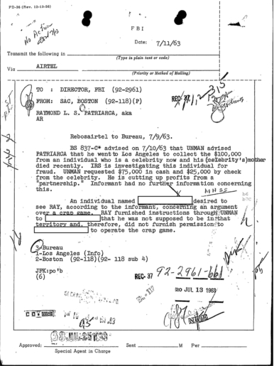 FBI Files - The Patriarca Papers - Entry 31 (INFOGRAPHIC: Patriarca and Hollywood and Sports)