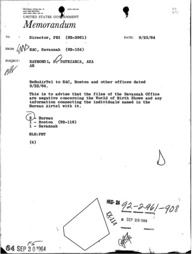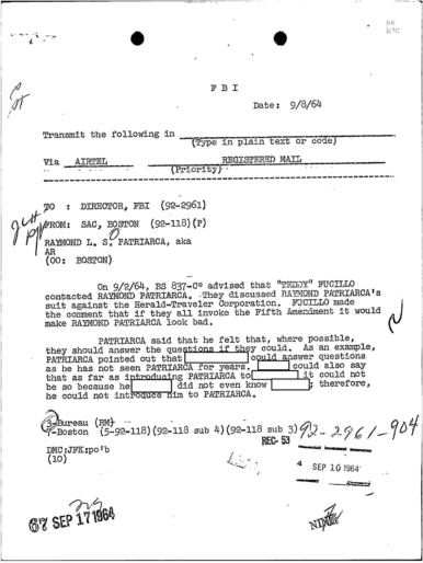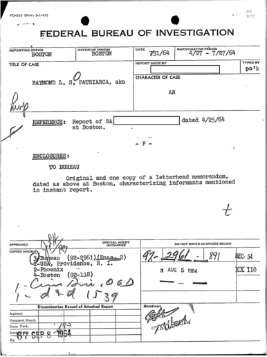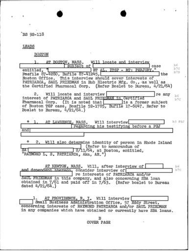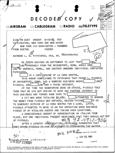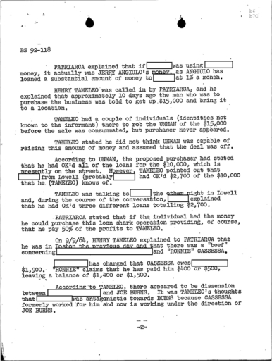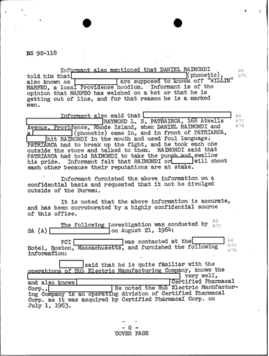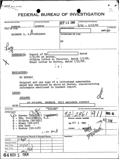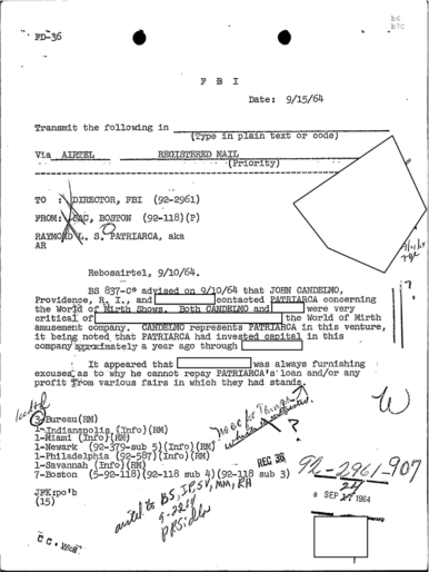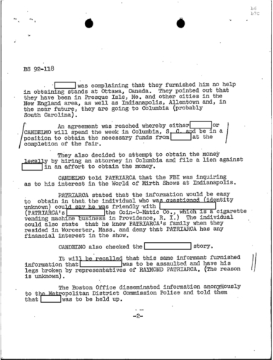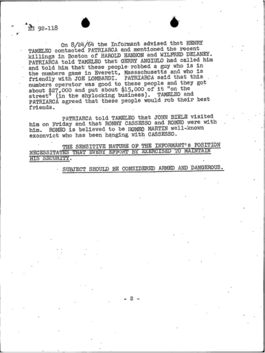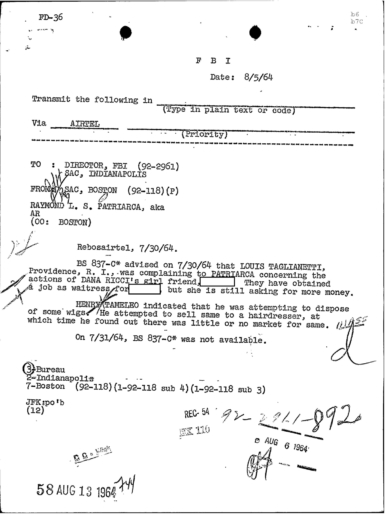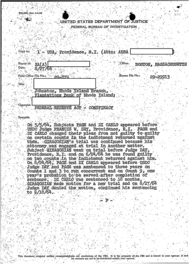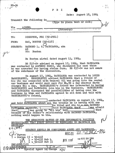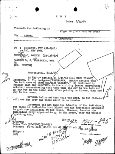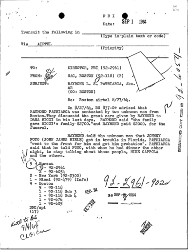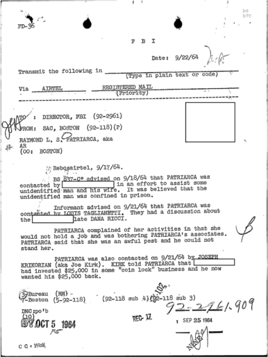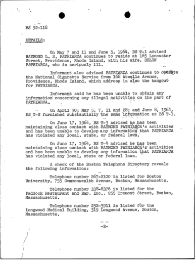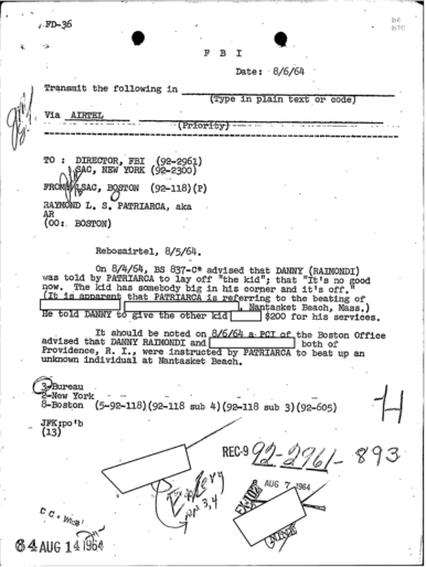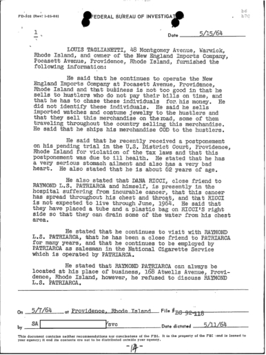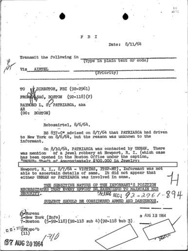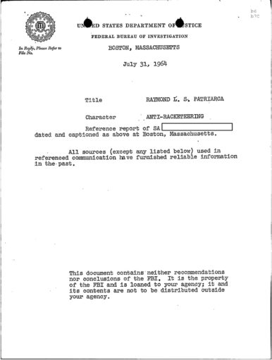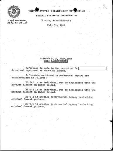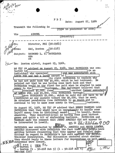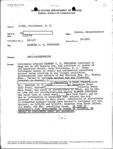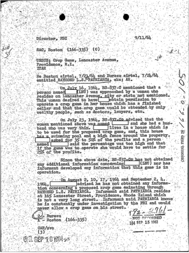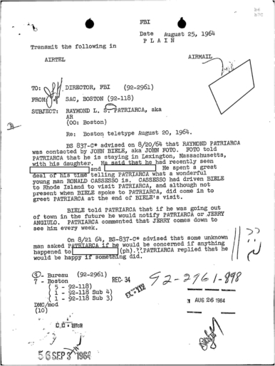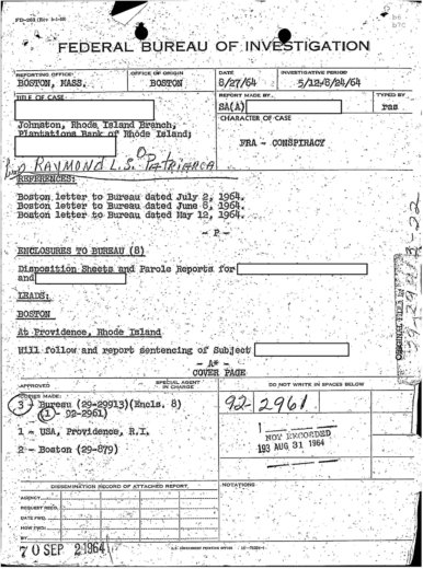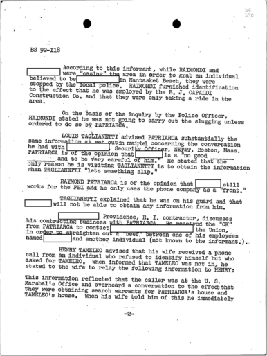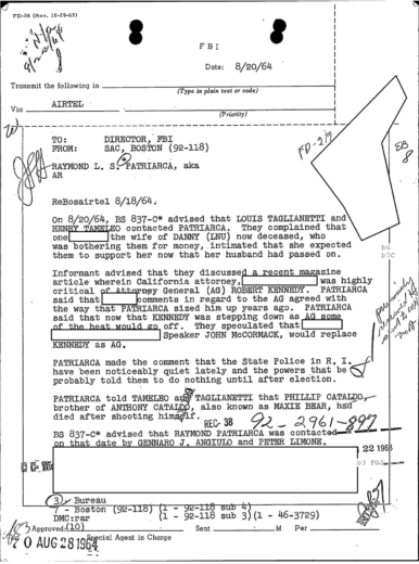 FBI Files - The Patriarca Papers - Entry 39