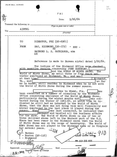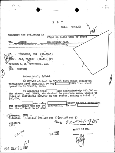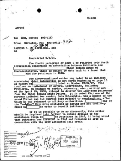 GET THE LATEST BREAKING NEWS HERE -- SIGN UP FOR GOLOCAL FREE DAILY EBLASTFBI Files - The Patriarca Papers - Entry 39
