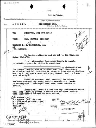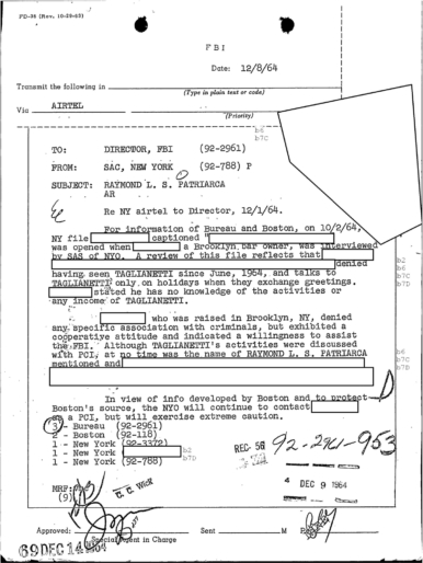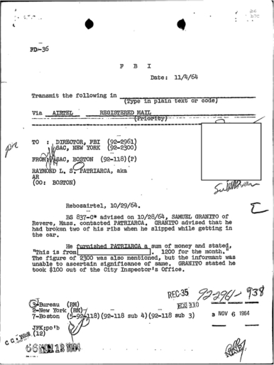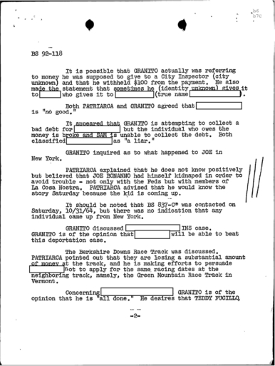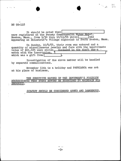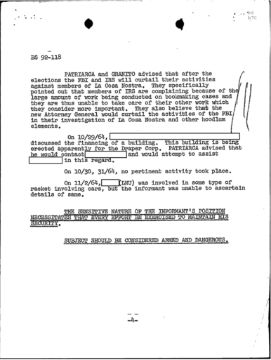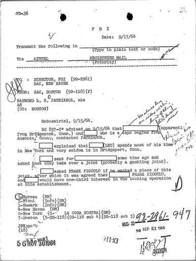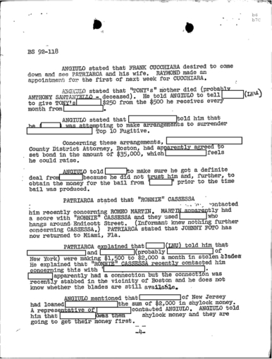 FBI Files - The Patriarca Papers - Entry 41 (The Mafia Rules About Bombings)