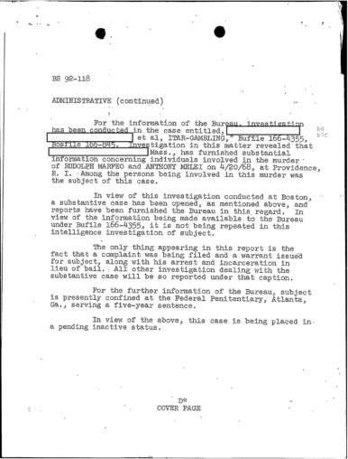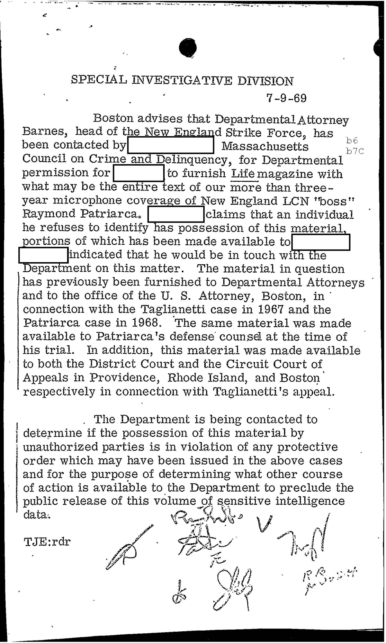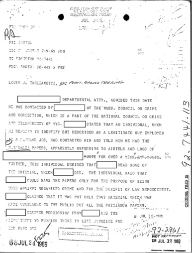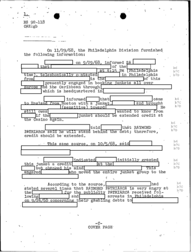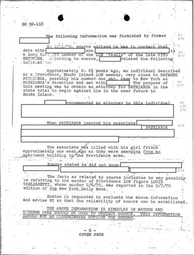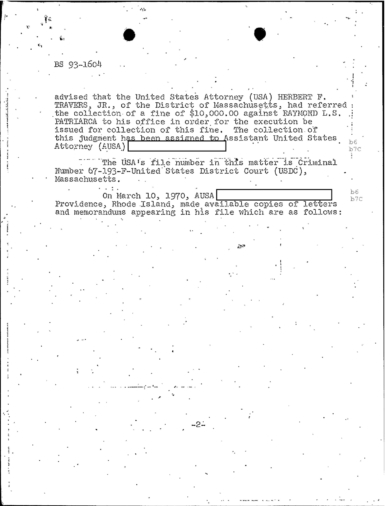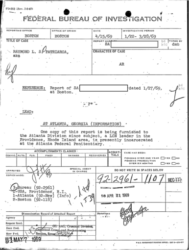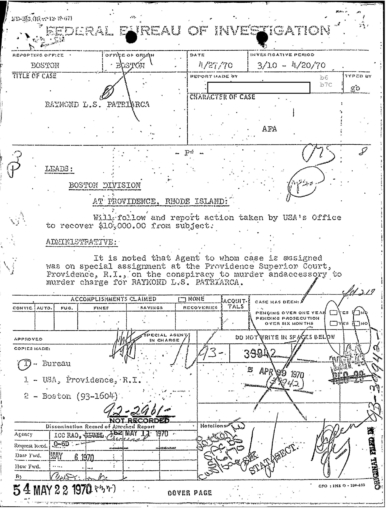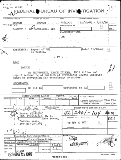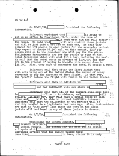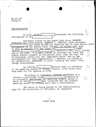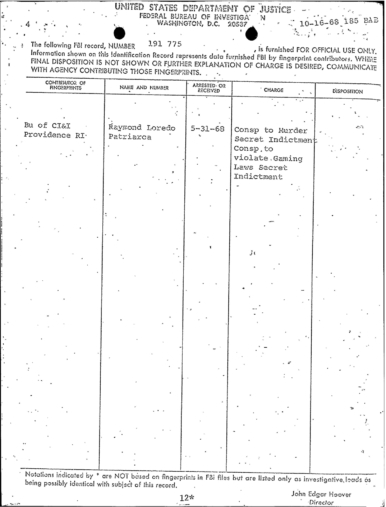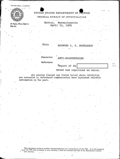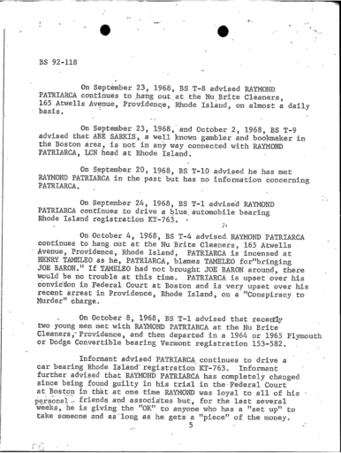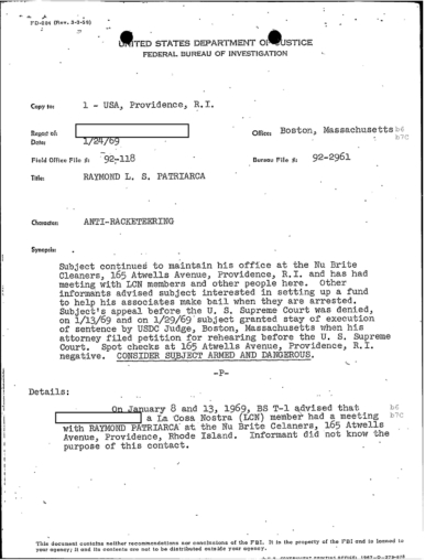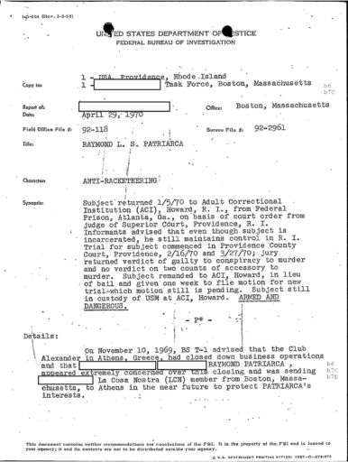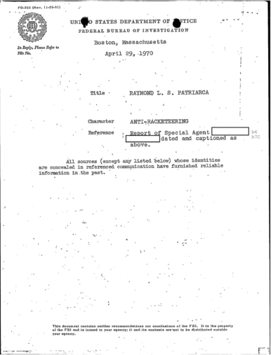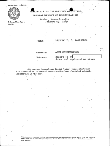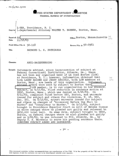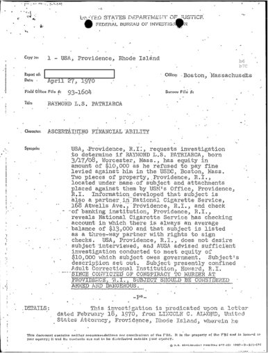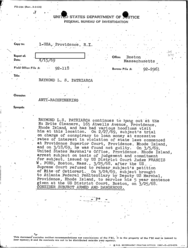 FBI Files - The Patriarca Papers - Entry 47 (Mob Radio Ad Infuriates Raymond Patriarca)