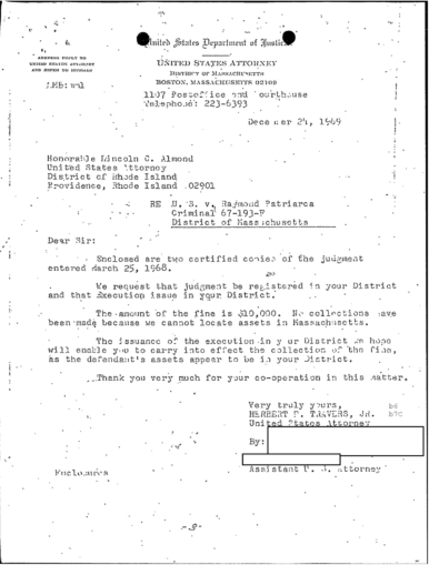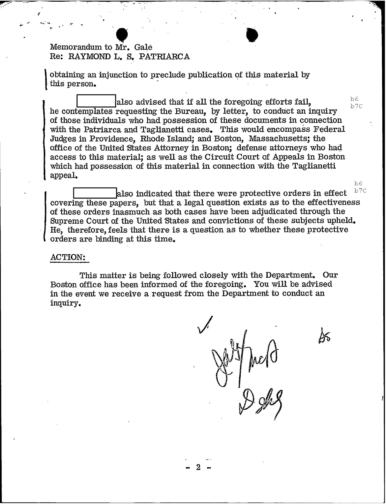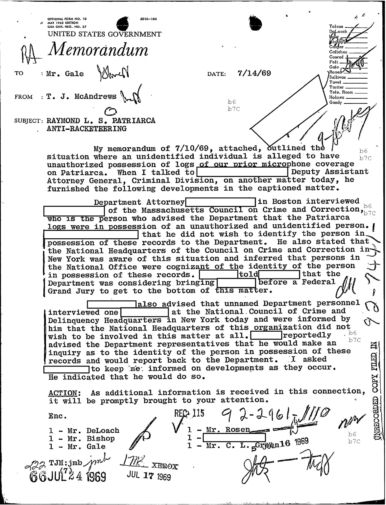 In March of 1970, a FBI memo outlines how Raymond Patriarca was infuriated by a mocking mob ad.