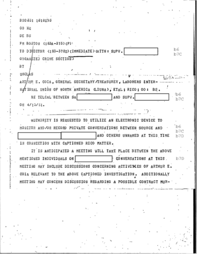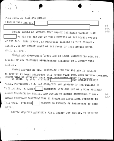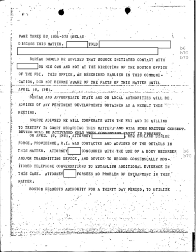 FBI Files - The Patriarca Papers - Entry 55 Col. Stone Protecting a Source