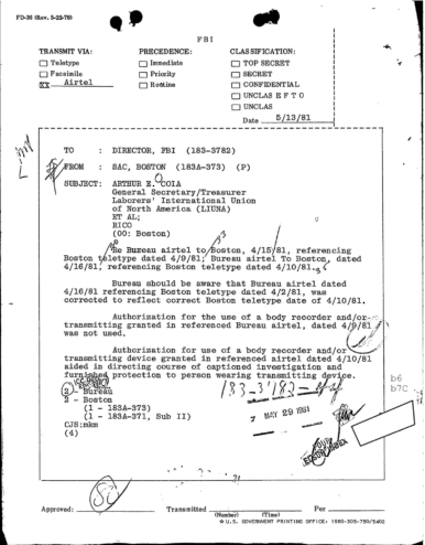 GET THE LATEST BREAKING NEWS HERE -- SIGN UP FOR GOLOCAL FREE DAILY EBLASTFBI Files - The Patriarca Papers - Entry 55