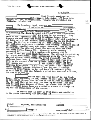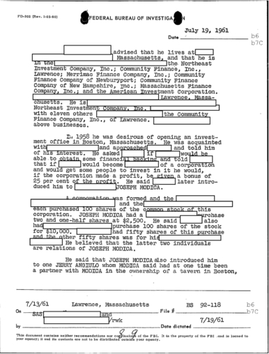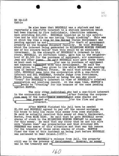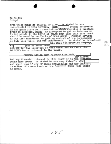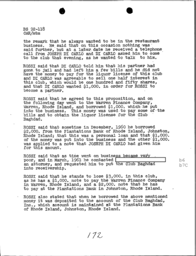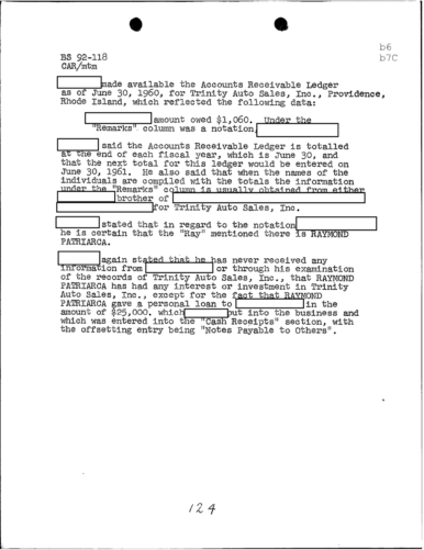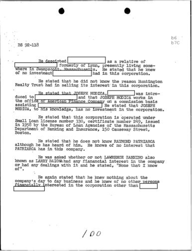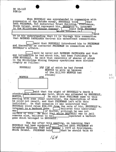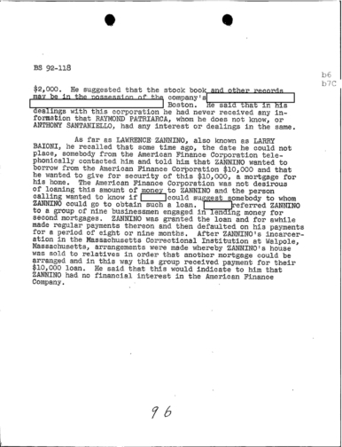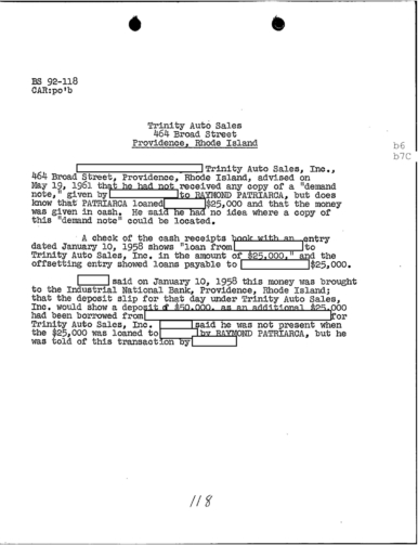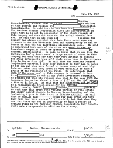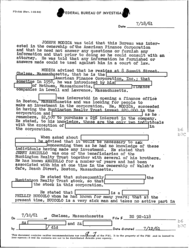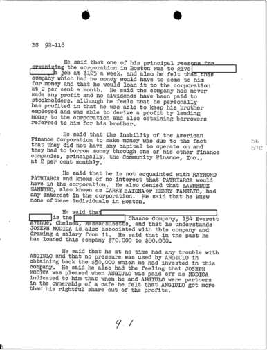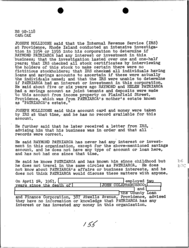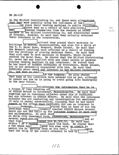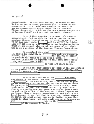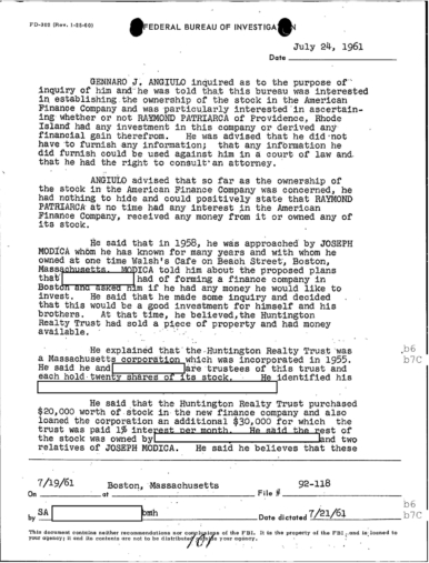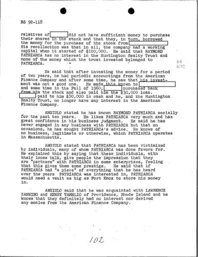 “ He (Anguilo) said that if Patriarca had a piece of everything that he has heard over the years Patriarca was interested in, Patriarca would need a vault as big as Fort Knox to store his money in.”