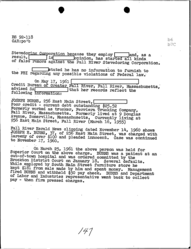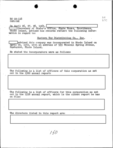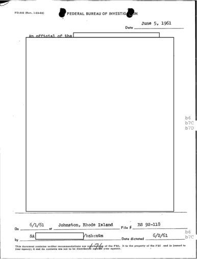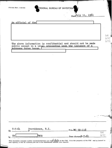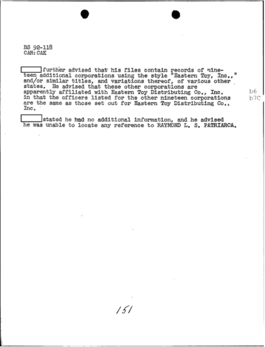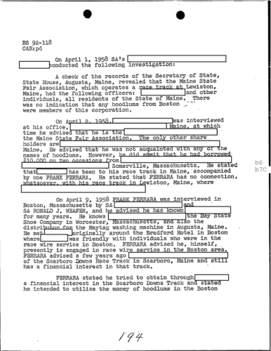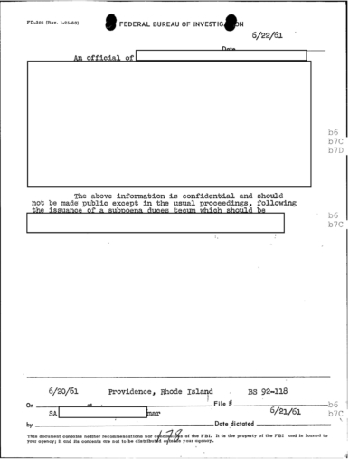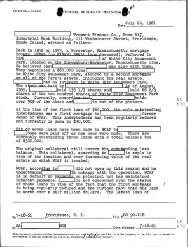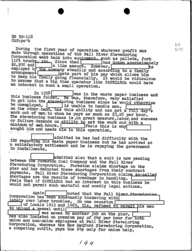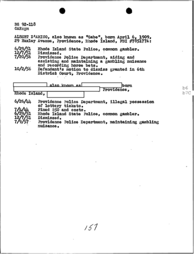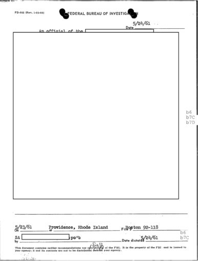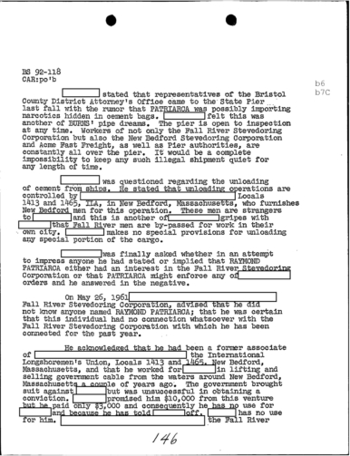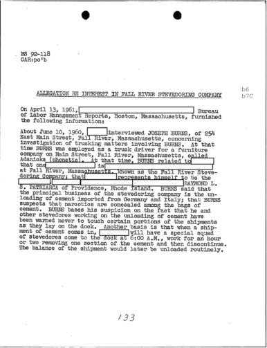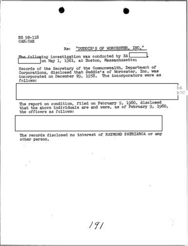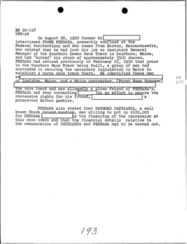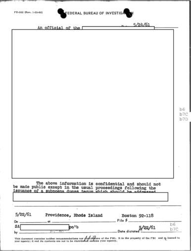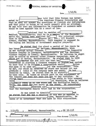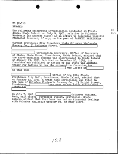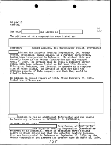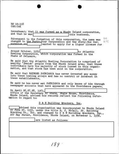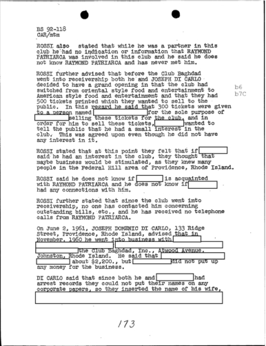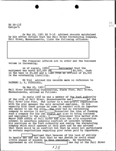 GET THE LATEST BREAKING NEWS HERE -- SIGN UP FOR GOLOCAL FREE DAILY EBLASTAccording to another FBI interview that Patriarca’s reputation was over stated, “ REDACTED further stated that he felt that Raymond Patriarca’s reputation is over-exaggerated due to newspaper accounts during the early part of 1950, as Patriarca had received a great deal of unfavorable publicity by the Providence newspapers, but these newspapers were in able to print any information of an evidentiary nature.”
