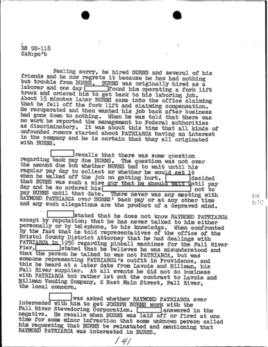 According to one FBI document, one of the brothers claim that, “Patriarca has been victimized by individuals, many of whom Patriarca has done favors for.”