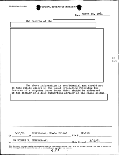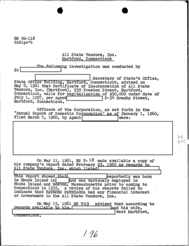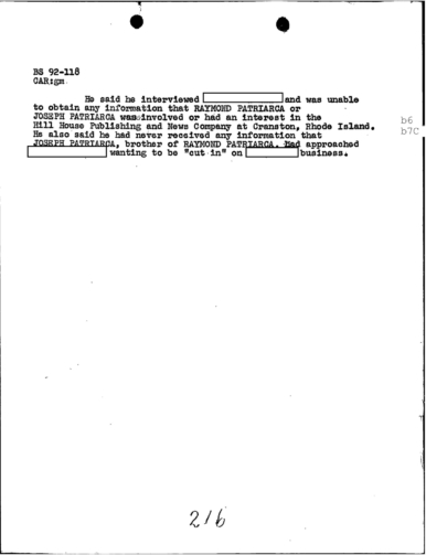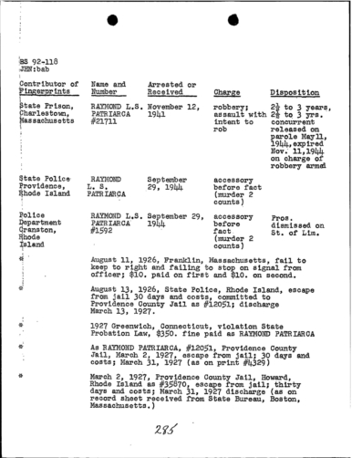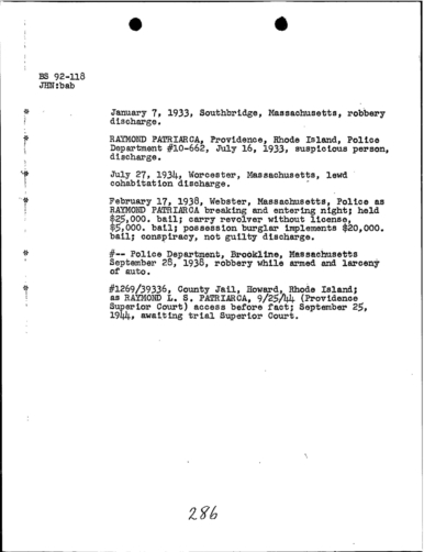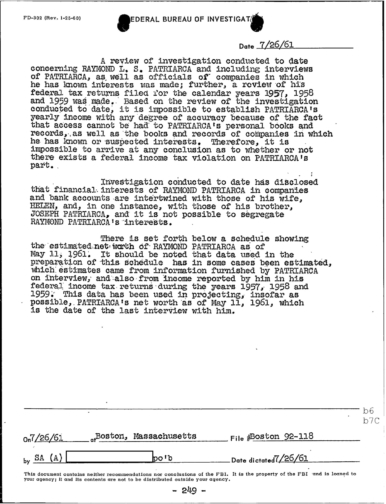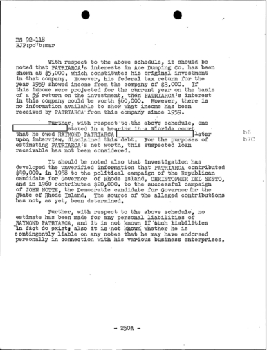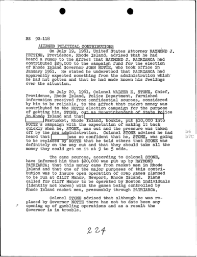 FBI Files - The Patriarca Papers - Entry 9, Was Governor Notte Bribed?