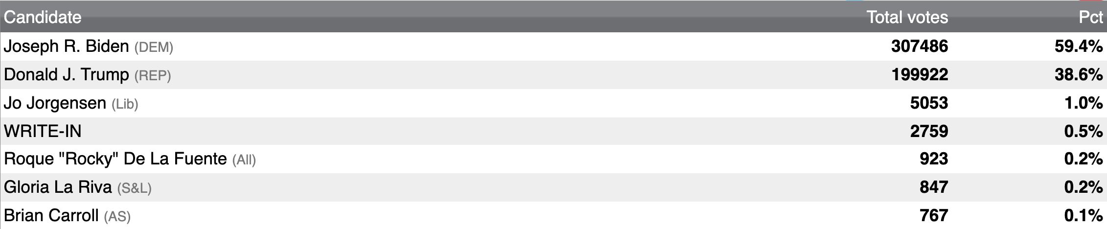 Trump received nearly 20,000 more votes in 2020 than he did in 2016.
