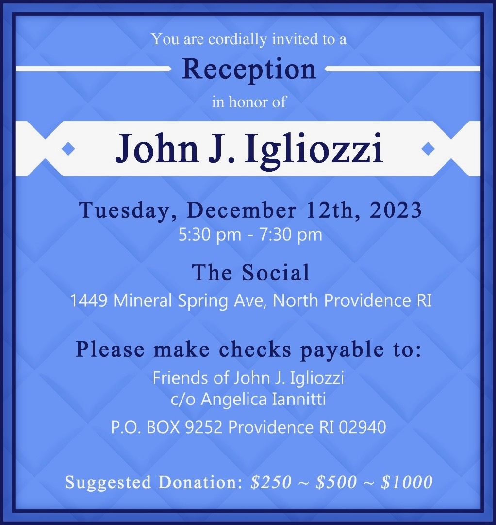 GET THE LATEST BREAKING NEWS HERE -- SIGN UP FOR GOLOCAL FREE DAILY EBLASTThe fundraiser was held at "The Social" at 1449 Mineral Spring Avenue in North Providence. Igliozzi is expected to run for Rhode Island Attorney General in 2026.