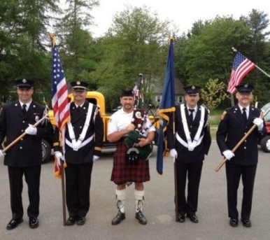 The parade stops at the Soldier's Statue in front of the Police Station on Maple Ave, the War Memorial at the Town Center and at the Veterans Lot at Mountain View Cemetery.