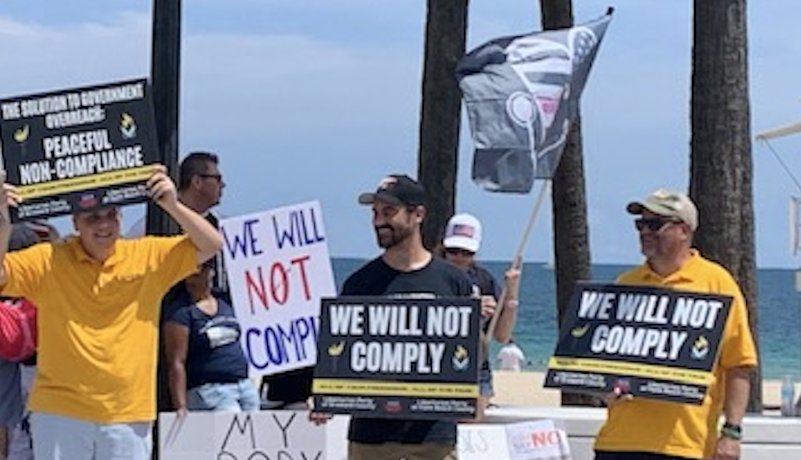 “Mask Protests” – I wasn’t on the ground in Florida for 15 minutes, when I encountered an anti-mask mandate protest along Highway A1A at the beach. Some held banners saying, “We Will Not Comply!” The most-clever, and in-your-face were, “The Solution to Government Overreach: Peaceful Non-Compliance,” (which is certainly a riff on Martin Luther King, Jr.’s strategy of “peaceful non-violence”). And “My Body, My Choice,” (a conservative shot at a similar slogan from the more liberal pro-choice movement regarding abortion rights). Language is a funny thing, that can be molded and changed. Sometimes it proves, “What’s old is new again,” even when lobbed from the other side of the aisle, on an entirely different issue.