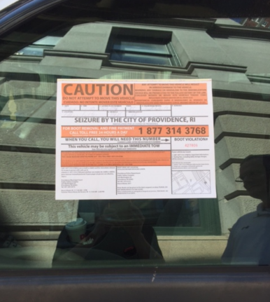 A vehicle used by Mayor Jorge Elorza’s Office for advance work was booted and seized on Friday for excessive tickets.