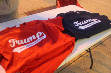 For Trump fans that left their gear at home, there was nothing to fear. Vendors took advantage of the passionate crowd, lining up near the entrances and selling buttons, hats and t-shirts like this one.