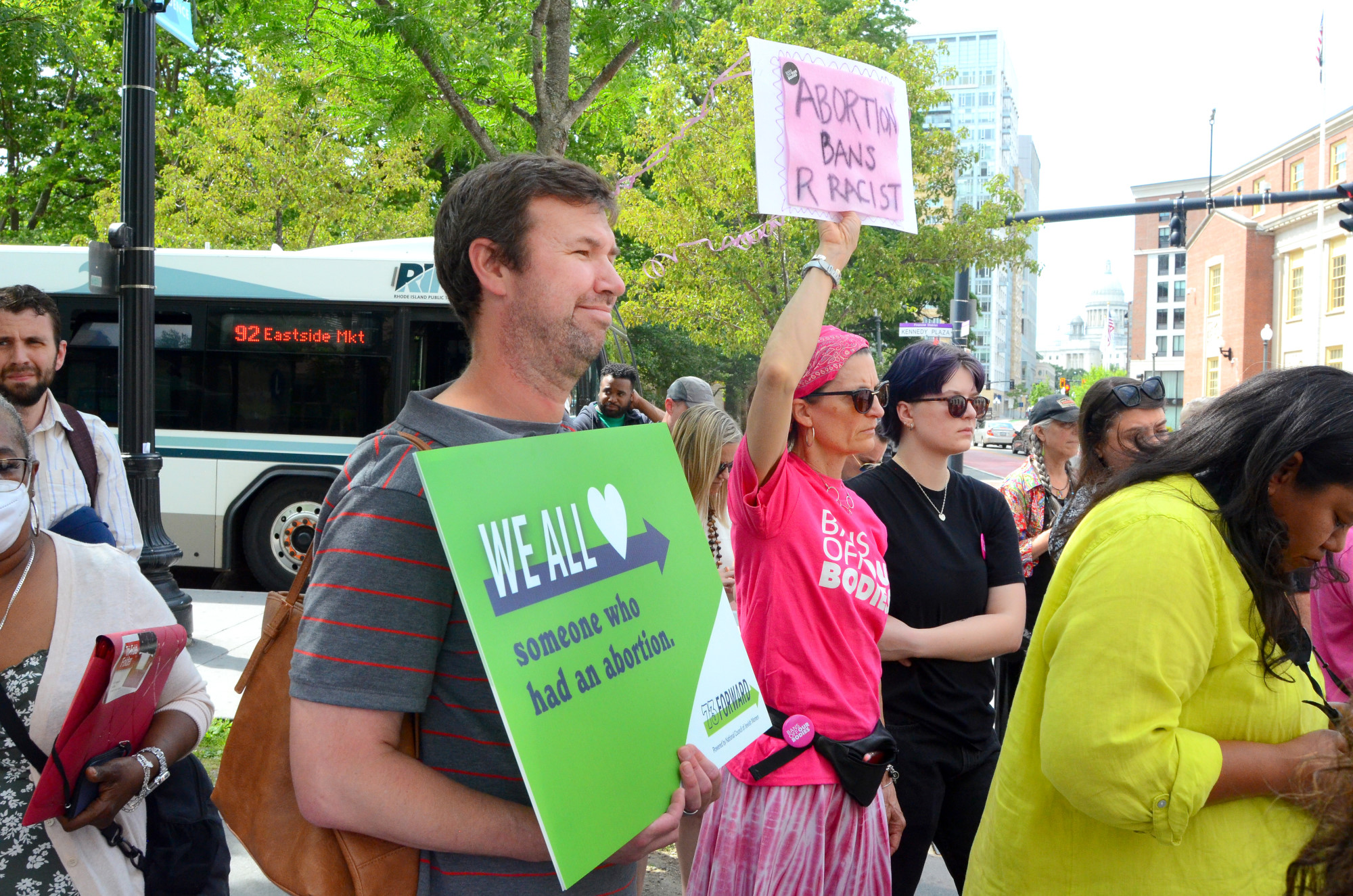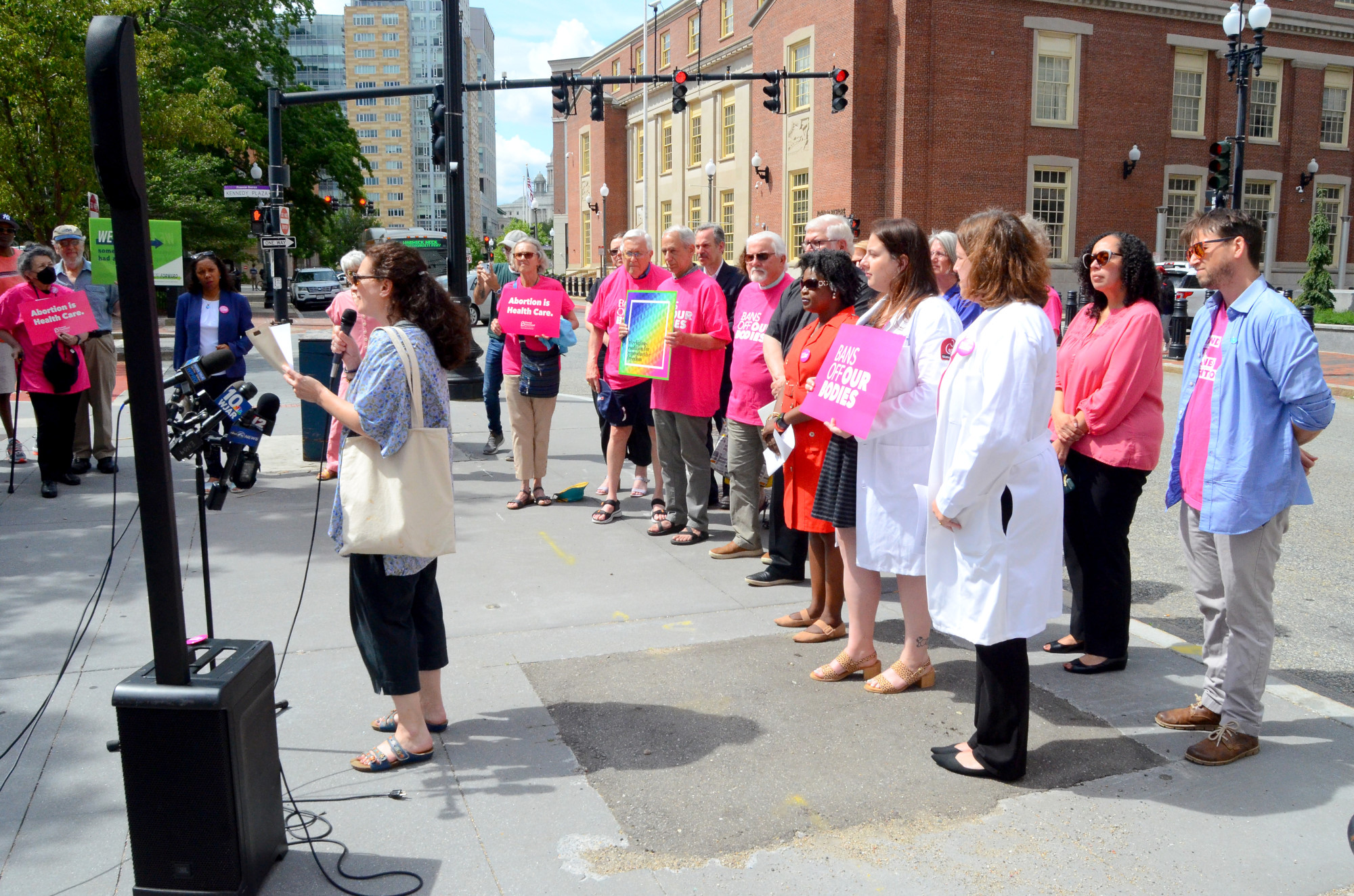Friday afternoon in front of the federal courthouse building on Kennedy Plaza in Providence, the Coalition for Reproductive Freedom protested the landmark decision by the U.S. Supreme Court overturning Roe v. Wade.