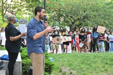 During the City Council Finance Committee meeting on Wednesday night which began after the protest, Alexis Morales of DARE’s Behind the Walls Committee spoke about his experience with police brutality.