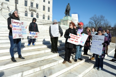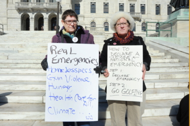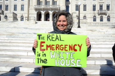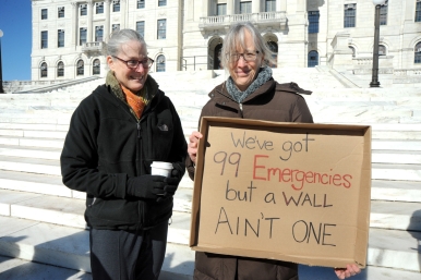 The protest comes just days after Trump declared a national emergency in order to secure more money for the wall.