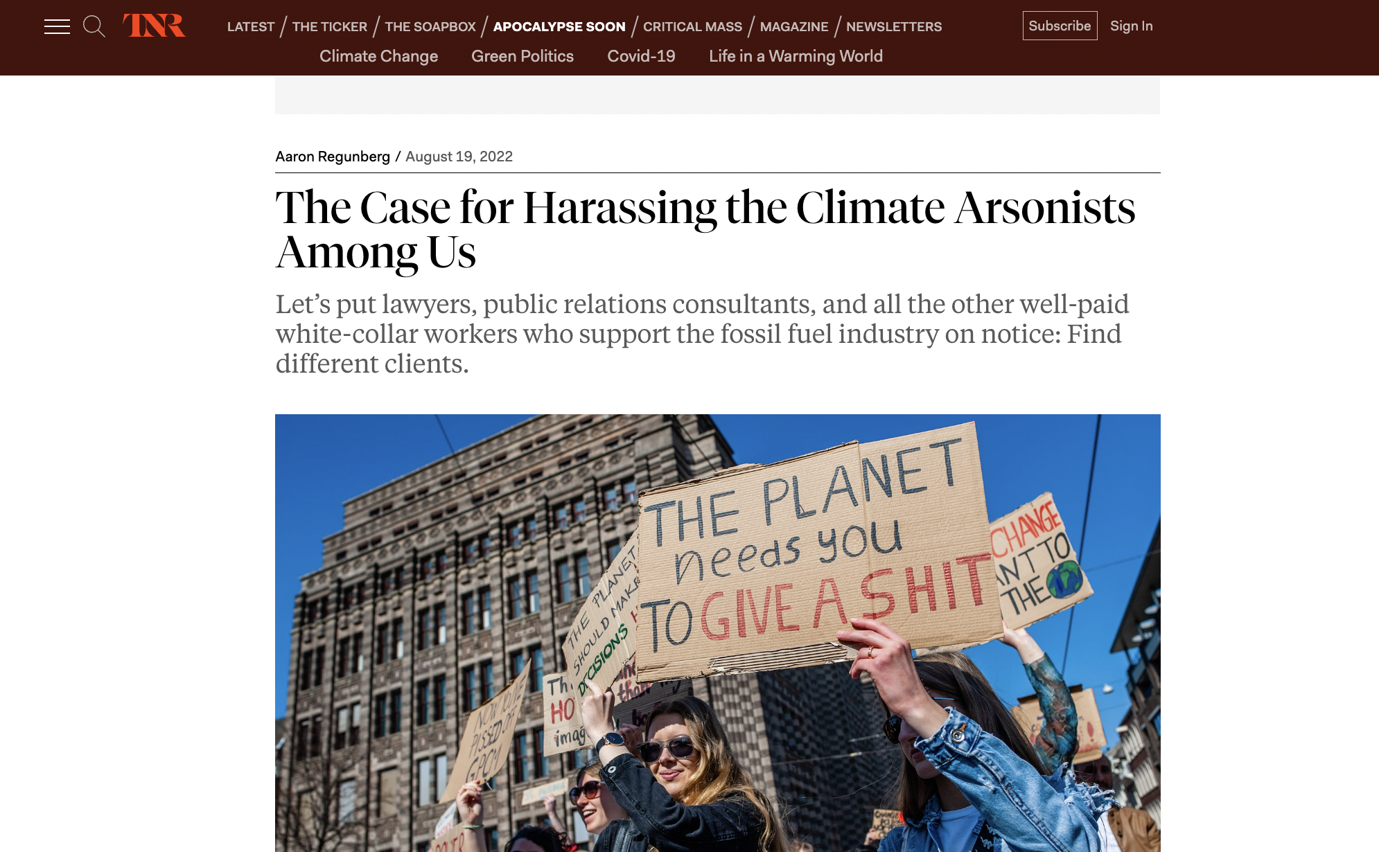 "The Case for Harassing the Climate Arsonists Among Us"