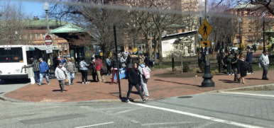 On Monday, dozens of men and women could be seen gathering in groups directly outside the second-floor office window of Providence Mayor Jorge Elorza’s office in Kennedy Plaza.