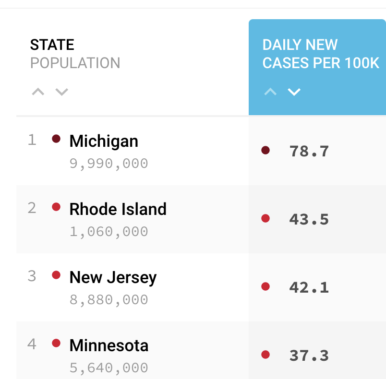 RI #2 in Coronavirus Cases Per 100,000