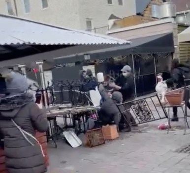 Video secured by GoLocal shows protesters attacking workers and owner Chris Morris of Antonelli’s Poultry Co. located on Federal Hill at DePasquale Plaza in Providence.
