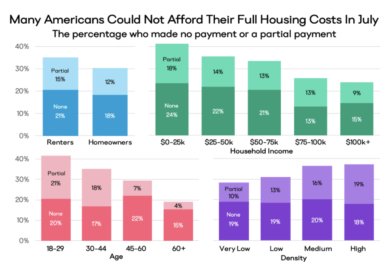 - 32 percent of Americans did not make a full on-time housing payment in July, up slightly from 30 percent in June.