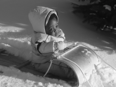 The race ended at the plowed street below with a screeching stop and sparks flying from the runners. Breathless at the bottom; now to trundle back to the top. We did it, over and over. The cold was creeping through to my feet, the most vulnerable target that defined time.