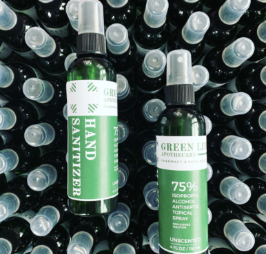 The 75% isopropyl alcohol-based non-sterile spray solution is available for delivery or pick-up at both Green Line Apothecary locations.
