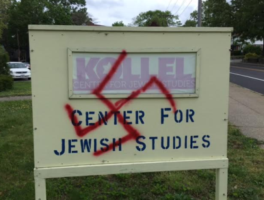 A miscreant, or a group of them, painted a swastika, on the sign of the Kollel Center for Jewish Studies, Pawtucket's only synagogue. Wouldn't it be nice if illogical hatred didn't exist?