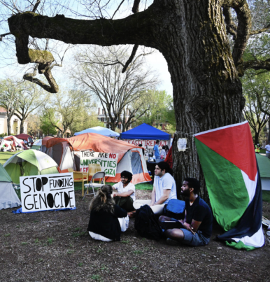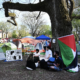 They were protesting against Brown's investment in companies that provided arms, defense supplies, and other goods to Israel.