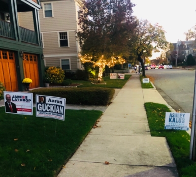 He posted lawn signs for a series of candidates that he supported this election cycle, which included Democrats and Republicans, conservatives and progressives.