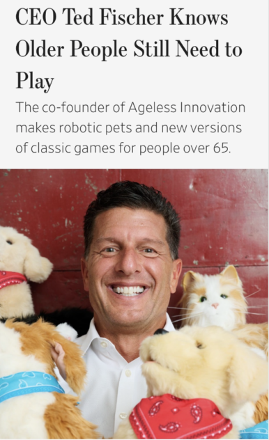 "Robotic pets make some people squeamish. Should man’s best friend run on batteries? “We’ve had plenty of naysayers tell us this is a little weird,” says Ted Fischer, co-founder and CEO of Ageless Innovation, a company that creates products for older adults, including animatronic dogs and cats. “But all you have to do is watch what happens when someone gets one,” he insists. “When the cat rolls over for the first time, people just go crazy.”