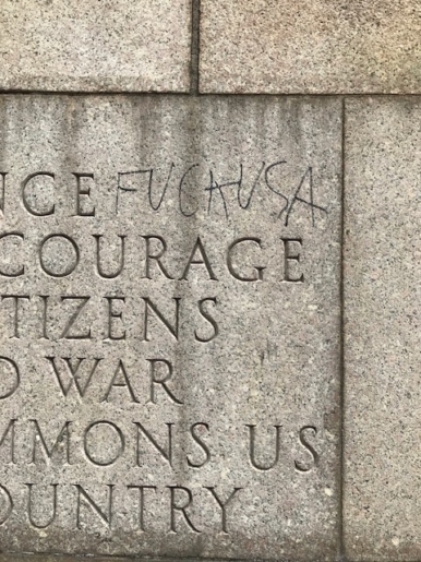 There’s been a revolting act of vandalism on the World War One Memorial in Providence. A miscreant, or a group of them, spray painted a derogatory, vulgar phrase on the monument. It’s unconscionable that someone would not only vandalise public property, but also disrespect the sacrifices of the veterans who gave their lives to make America the greatest country in world history. Whomever did this heinous act should be ashamed.