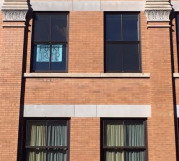 One of the tenants of the AS220 building apparently thinks it is a good idea to have a sign that says the four letter F word followed by the word Trump, in their window. It would be a disgrace to host such a sign anywhere--since the office of the Presidency and the Commander in-Chief--should always be respected, yet making the situation worse was that the building is near the Rhode Island Nurses Institute, which has students as young as 13-years-old. The sign owner removed it early this week, only to put it back up by Wednesday.