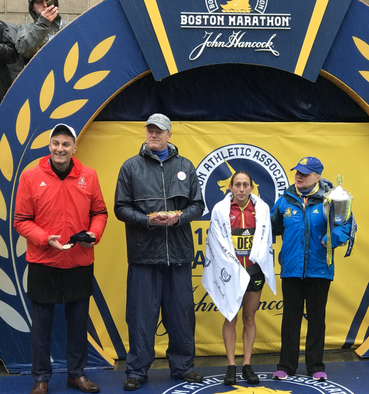 The women’s wheelchair division was won by Tatyana McFadden, with a time of 2:04:40.