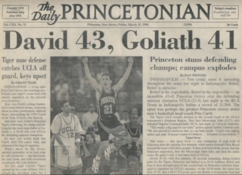 In 1996, Princeton beat defending NCAA champs UCLA.