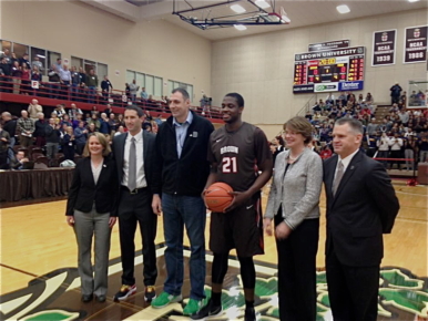 Prior to the game, Brown honored senior forward Cedric Kuakumensah for breaking the Ivy League career blocks record. Kuakumensah broke the record of Brian Gilpin who was on hand to help honor him.