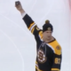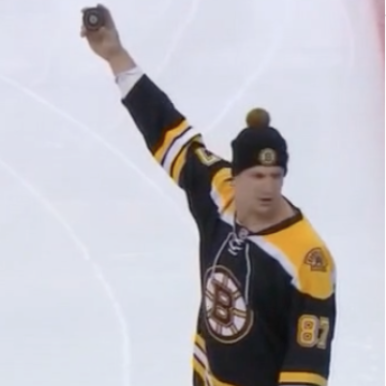 Gronkowski spiked a hockey puck prior to a Bruins game in a ceremony honoring the Patriots for winning the Super Bowl.