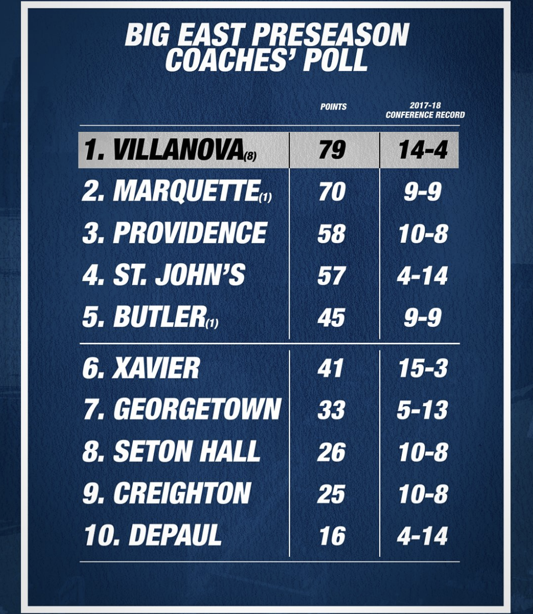 Just behind the Friars is St. John’s and Butler, who were picked fourth and fifth respectively, while Xavier, Georgetown, Seton Hall, Creighton, and Depaul were picked six through ten.