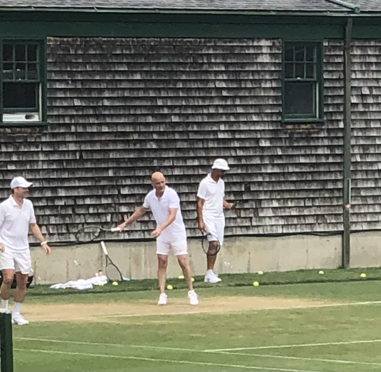 Agassi put on a clinic on Saturday with some local tennis players.